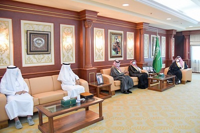 استقبل صاحب السمو الملكي الأمير محمد بن عبدالعزيز بن محمد بن عبدالعزيز نائب أمير منطقة جازان, بمكتبه بالإمارة اليوم, أمين عام مجلس شباب المنطقة الدكتور عثمان بن موسى حكمي بمناسبة تعيينه أمينًا عاماً للمجلس ويرافقه الأمين العام السابق الدكتور إبراهيم أبو هادي.