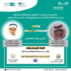 أخبار المناطق > الطالبان الصغيران ينفّذان برنامجًا عن مسابقة “مدرستي تبرمج” بمكتب تعليم صامطة