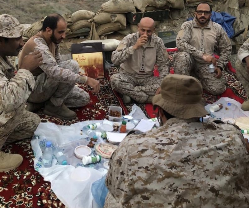 وحصلت “احد المصادر” على صور لعدد من أبطال الحد الجنوبي، ناذرين أرواحهم في سبيل الله للدفاع عن الوطن، راصدةً جملة من مشاهد إفطار هؤلاء الأبطال، الدالة على أن الوطن يحظى بأشاوس مستشعرين المسؤولية المنوطة بهم وعلى عاتقهم، لا سيما وأن الحكومة الرشيدة سخّرت كل الإمكانات من أسلحة متطورة وأجهزة عالية الدقة، مكّنت هؤلاء الأبطال من الوقوف بحزم وعزم في وجه العدو، وإيقافه والنيل منه قبل اقترابه من حدود الوطن الغالي.