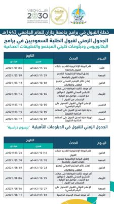 تبدأ جامعة جازان ممثلة في عمادة القبول والتسجيل غداً المرحلة الثانية لتسجيل الطلبة الراغبين بالدراسة في الفصل الصيفي للعام ١٤٤٢ هـ ، وتستمر حتى يوم السبت ١٠ شوال من خلال حساب الطالب في النظام الأكاديمي وحسب المقررات المطروحة والمقاعد المتاحة.