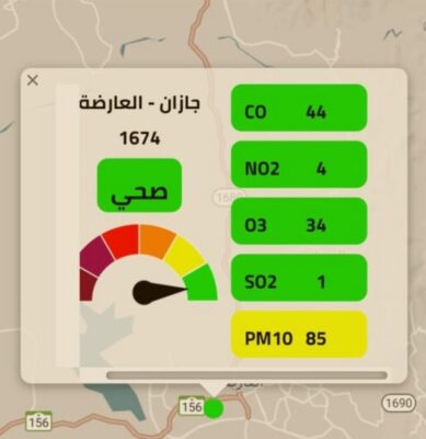 كشف مصدرٌ من المدينة الصحية بمحافظة العارضة شرق جازان أن قياس نسبة جودة الهواء بالمحافظة محقق للمعايير “نقي”، وذلك بحسب محطة مراقبة جودة الهواء والتي حضرت وتم الرصد.