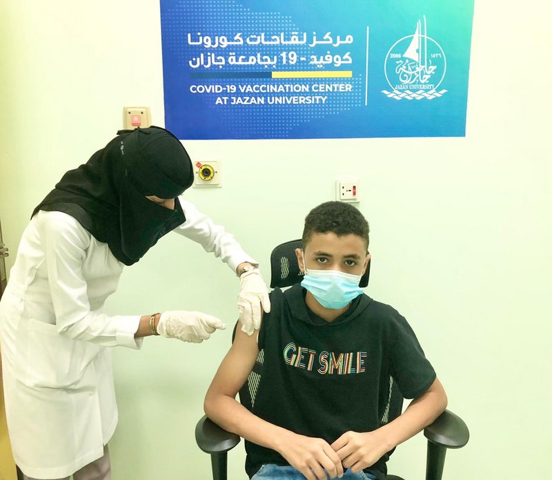 شهد مركز لقاحات كورونا بجامعة جازان إقبالاً متزايدًا من الفئات العمرية من (١٢ – ١٨ عاماً)، لأخذ لقاح كورونا وسط إجراءات احترازية.