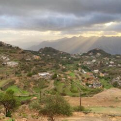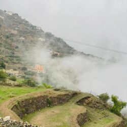وبدت تلك الجبال ذات الطبيعة البِكر الخلابة هذه الأيام، بأبهى حللها، معانقةً الضباب والسحاب بقممها، ومتزينة بكسائها الأخضر الزاهي.