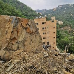 وقال شهود عيان إن الصخرة الضخمة المنهارة توقفت على بُعد أمتار من المبنى وإلا كانت العواقب أكبر.