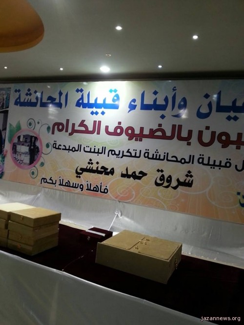 شيخ واعيان وابناء قبيلة المحانشة بمنطقة جازان يحتفون ببنتهم ( شروق حمد محنشي) التي حصدت المركز الثالث عالميا في مسابقة الرياضيات الذهنية في كوريا .