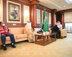 دشّن  الأمير محمد بن عبدالعزيز بن محمد بن عبدالعزيز أمير منطقة جازان بالنيابة بمكتبه بالإمارة اليوم ، عددًا من المشاريع الجديدة التابعة لهيئة الهلال الأحمر السعودي بمنطقة بجازان.