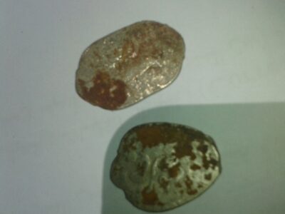 من المستحيل ان تجد قطعتين متشابهتين وهذا دليل على انها ليست قطع نقدية اذا ماذا قد تكون الامر محير والاعجب ان ما تحوية ليس كتابة بل رموز وصور