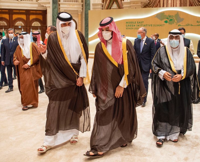 وتفصيلاً، قال أمير دولة قطر: أشكر أخي الأمير محمد بن سلمان على دعوتي للمشاركة في قمة ‫مبادرة الشرق الأوسط الأخضر التي ناقشنا أهميتها مارس الماضي، وأبارك للمملكة العربية السعودية الشقيقة هذه الخطوة.