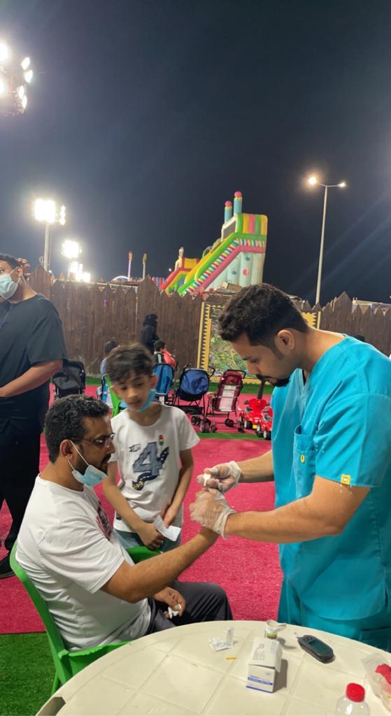 يُشار إلى أن الإحصائيات تشير إلى أن نسبة الإصابة بالمرض بالمملكة تجاوز الـ “27 %”، علما بأنه المسبّب الرئيس لكثير من الأمراض الخطيرة؛ كالعمى والفشل الكلوي، والإضرار بالجهاز العصبي، والنوبات القلبية والسكتات الدماغية وبتر الأطراف السفلية، وغيرها، وخطورة المرض وارتفاع معدلات الإصابة به، يحتمان تظافر وتكامل جهود الحكومة والقطاع الخاص لمحاربته وشكر النخيفي الفريق المشارك من قسم التغذية وقسم التغذية العلاجية وقسم التوعية التثقيف الصحي وشكر إدارة المهرجان للمشاركة لتعاونهم الدائم لخدمة المجتمع في مجال التوعية الصحية.