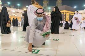 شؤون الحرمين تُعيد ملصقات التباعد الجسدي بالمسجد الحرام