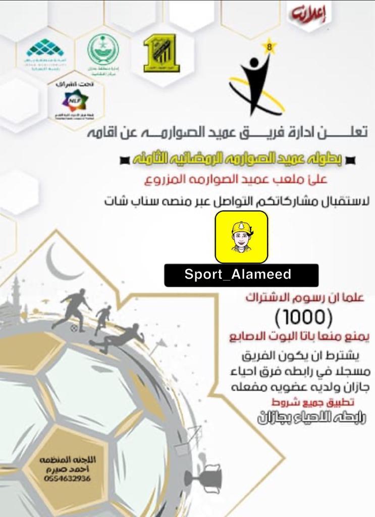 تعلن ادارة فريق عميد الصوارمة عن اقامة بطولة عميد الصوارمة الرمضانية الثامنة على ملعب عميد الصوارمة