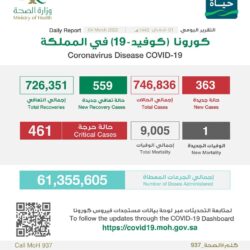 وقالت الوزارة إنه تمّ تسجيل 559 حالة تعافٍ جديدة؛ ليصبح الإجمالي 726351 حالة، ولله الحمد.