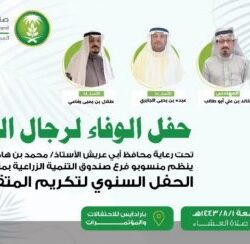 على شرف سعادة محافظ ابوعريش الأستاذ/ محمد بن هادي الشمراني اقام منسوبو صندوق التنمية الزراعية بمنطقة جازان حفل تكريم للمتقاعدين لعام وعلى راسهم مدير الفرع بالصندوق سابقا المهندس احمد بن عبد الله دراج والمهندس خالد بن علي أبوطالب والأستاذ طلال بن يحي رفاعي والأستاذ عبده بن يحي الجابري .