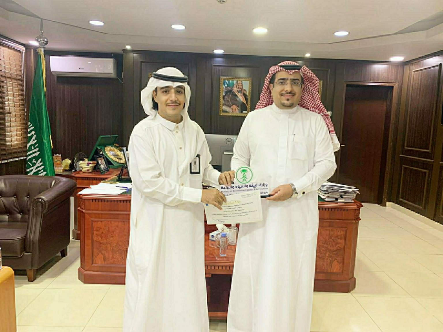 كرم مدير عام فرع وزاره البيئه والمياه والزراعه بمنطقه جازان المهندس / محمد بن علي آل عطيف بمكتبه اليوم الإعلامي المتألق أ يحيى بن فرحان الفيفي ” وذلك نظير الأعمال والمجهودات التي يقدمها في نشر أخبار وفعاليات الفرع والمكاتب والمراكز والوحدات .