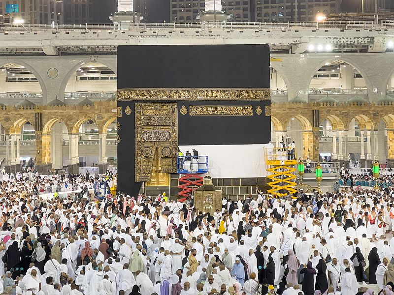 قامت الرئاسة العامة لشؤون المسجد الحرام والمسجد النبوي اليوم برفع الجزء السفلي من كسوة الكعبة المشرفة بمقدار ثلاثة أمتار تقريباً، وتغطية الجزء المرفوع بإزار من القماش القطني الأبيض بعرض مترين تقريباً من الجهات الأربع، وذلك كما جرت العادة السنوية وحسب الخطة المعتمدة لموسم حج هذا العام 1443هـ.