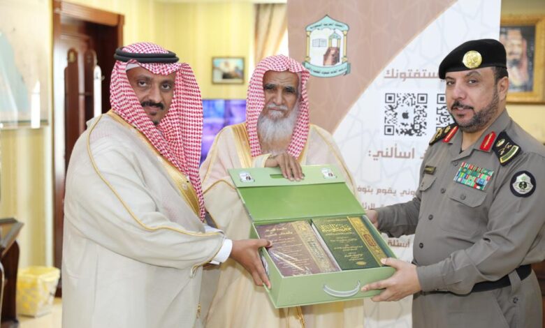 استقبل مدير شرطة منطقة جازان اللواء د.عويد بن مهدي العنزي فضيلة مفوض الإفتاء بالمنطقة الشيخ محمد شامي شيبة ومدير عام فرع الرئاسة العامة للبحوث العلمية والإفتاء بالمنطقة عبدالله بن علي حمدي؛ بحضور مساعده اللواء على محمد الغامدي ومدراء الإدارات بالشرطة وقد قام مدير فرع الرئاسة بشرح مبادرة “يستفتونك” وتطبيق “اسألني” الالكتروني المتعلق بالإجابة عن الفتاوى تخلل ذلك كلمة لمفوض الإفتاء وضح فيها أهمية الإفتاء وضرورة رجوع المجتمع عامة إليه والتحذير من الفتاوى الشاذة وأن هذين الأمرين محل عناية واهتمام ولاة الأمر حفظهم الله.