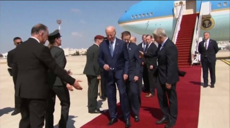 كشف مقطع فيديو عن ارتباك الرئيس الأمريكي “بايدن” لحظة وصوله إلى إسرائيل ضمن رحلته للشرق الأوسط والتي تستمر عدة أيام.