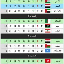 وتأهل المنتخب السعودي عن المجموعة الأولى، مع منتخبي الأردن واليمن من الثانية، ومنتخب الجزائر من الثالثة والمنتخب المصري من الرابعة، والمنتخب التونسي من المجموعة الخامسة، رفقة منتخبي المغرب وفلسطين من المجموعة السادسة والأخيرة.وتقام مباريات الدور ربع النهائي على مدار يوم الأحد المقبل.