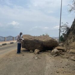 وجاري العمل لرفع التقرير الفني للجهات ذات العلاقة بعد ان يتم استعراض الاسباب ووضع الحلول والتوصيات الفنية لدرء مخاطر الانهيارات الجبلية.