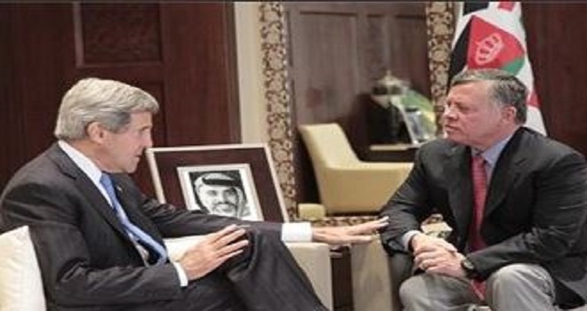 وكان الملك عبد الله الثاني التقى في العقبة الجمعة الماضي، وزير الخارجية الأمريكي، جون كيري، الذي يقوم بزيارة قصيرة إلى المملكة، على مستجدات المفاوضات الفلسطينية- الإسرائيلية الجارية، والخطوات التي تمر بها.