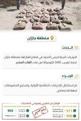 أحبطت الدوريات البرية لحرس الحدود في قطاع العارضة بمنطقة جازان، تهريب (540) كيلوجراماً من نبات القات المخدر.