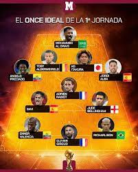 وضمت قائمة “ماركا” محمد العويس في حراسة المرمى، نجم لقاء السعودية والأرجنتين، وأمامه في الدفاع كل من الإكوادوري أنجيلو بريسيادو والبلجيكي توبي ألدرفيريلد والياباني كو إيتاكورا والإسباني جوردي ألبا، وفي خط الوسط الإسباني غافي والفرنسي رابيو مع الإنجليزي جود بيلينغهام، أما في الهجوم فقد وقع الاختيار على الإكوادوري إينر فالنسيا والبرازيلي ريتشارليسون والفرنسي جيرو.