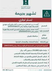 “التجارة” تٌشهر بالمواطن “أحمد بن شامان بن محمد الشراري” والمقيم “أحمد محمد عثمان سليمان” لارتكابهما جريمة التستر في تجارة المنتجات الزراعية