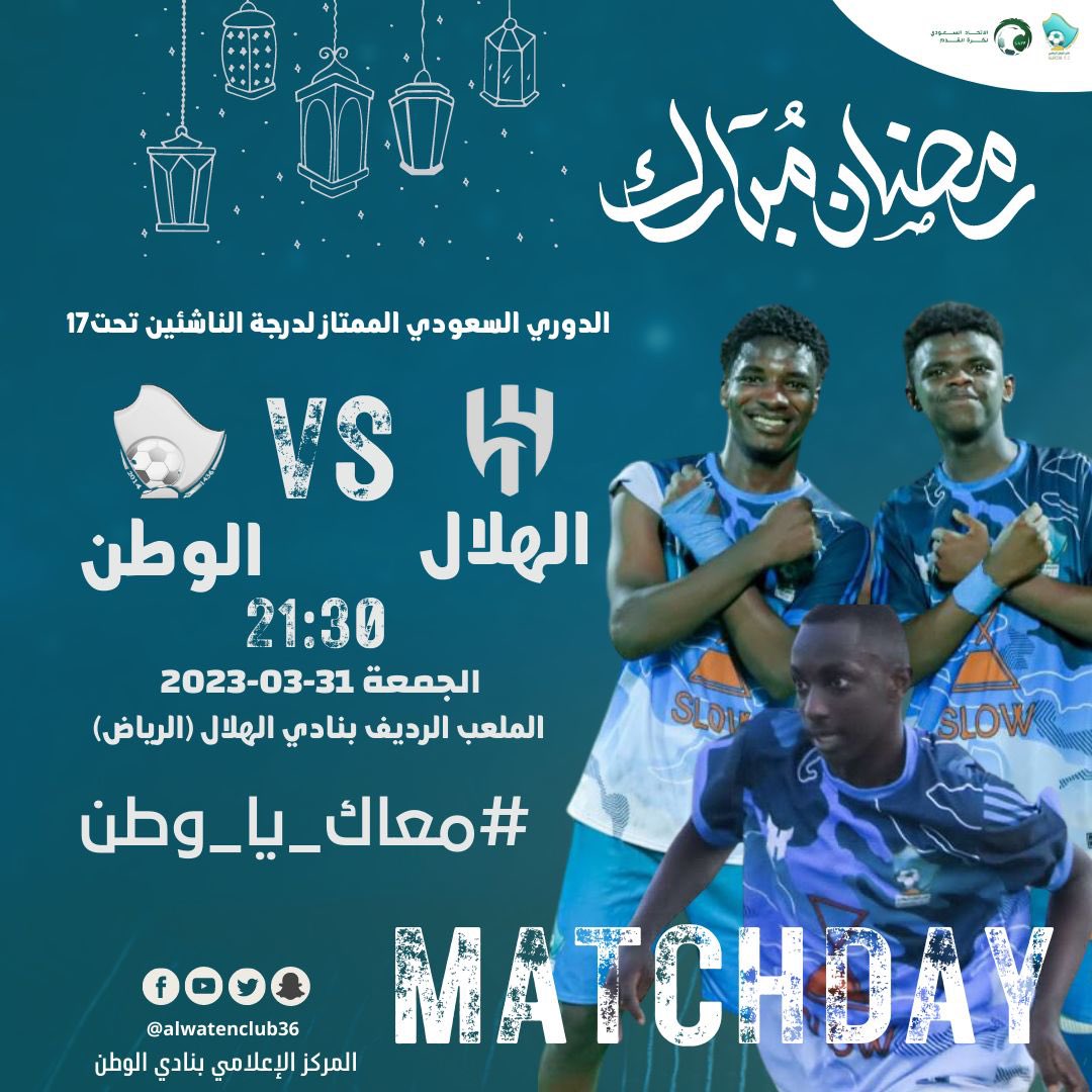 ضمن الجولة 32 من الدوري السعودي الممتاز للناشئين تحت 17 سنة أقيمت امس على ملعب الرديف بنادي الهلال بالعاصمة الرياض مباراة جمعت الوطن بالهلال انتهت بفوز الهلال 2/3