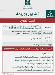ونشرت الوزارة الحكم الصادر من المحكمة الجزائية بالرياض المتضمن فرض غرامة مالية والتشهير بالمخالفين على نفقتهم، بالإضافة إلى العقوبات التبعية المقررة نظاماً وهي إغلاق المنشأة، وتصفية النشاط، وشطب السجل التجاري، والمنع من مزاولة النشاط التجاري، واستيفاء الزكاة والرسوم والضرائب، وإبعاد المتستر عليه عن المملكة وعدم السماح له بالعودة إليها للعمل.