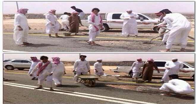 تداول شباب من منطقة حائل خلال الأيام الماضية صوراً عبر مواقع التواصل الاجتماعي لردم حفر في الشوارع بالمنطقة على أيدي بعض الأهالي الذين ضجوا من زيادتها وتسببها في الكثير من الحوادث.