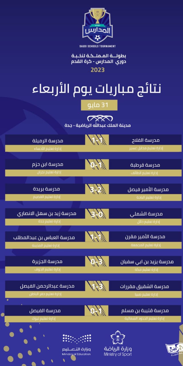 ضمن دوري نخبة المدارس كرة القدم المقامة في مدينة جدة ثانوية الشقيق بتعليم صبيا بطل منطقة جازان يتغلب على بطل تعليم حفر الباطن ب 1/3 وبذلك يتأهل إلى دور الثمانية
