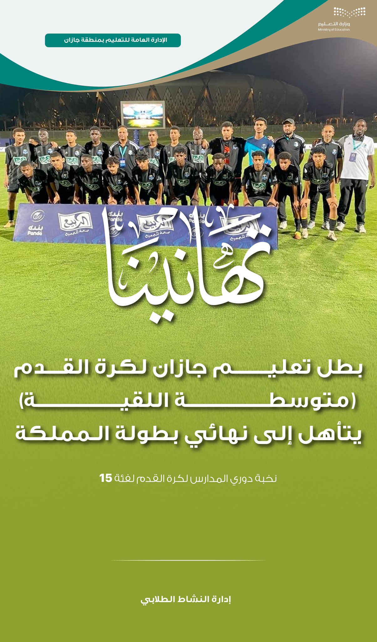 بطل جازان لكرة القدم مداس متوسطة اللقية يتأهل إلى نهائي بطولة المملكة للمدارس