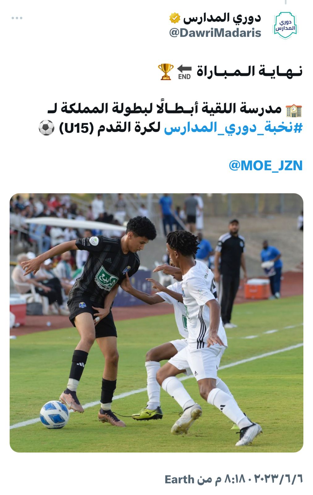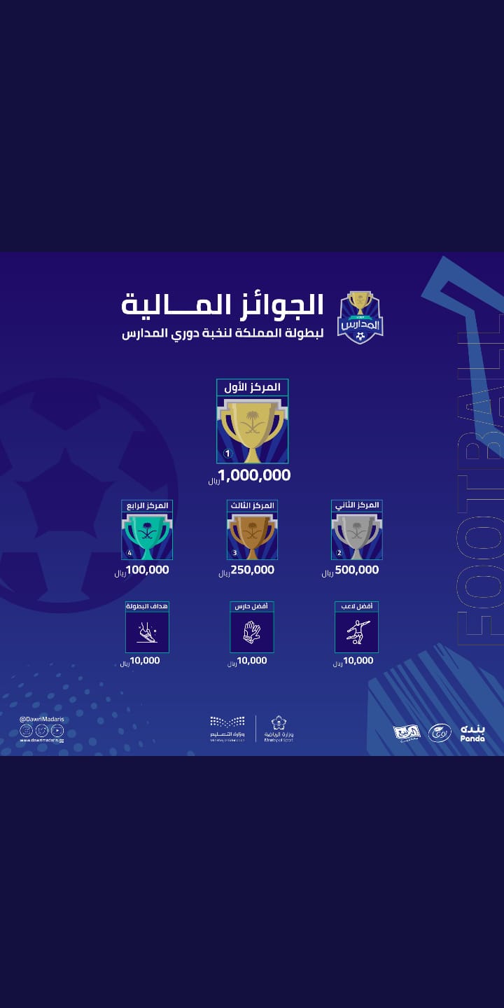 بعد تغلبه على متوسطة الشيخ حافظ الحكمي بطل تعليم الرياض. بركلات الترجيح بعد أن انتهت الأشواط بالتعادل السلبي