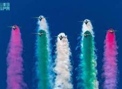 وأوضح قائد فريق الصقور السعودية المقدم طيار محمد بن عبدالله الفارس، أن مشاركة القوات الجوية تضمنت عروضاً جوية احترافية بطائرات فريق الصقور السعودية، فيما قدمت طائرتا التايفون عروضاً جوية انفرادية وأظهروا من خلالها المستوى العالي لقدرات ومهارات الطيارين السعوديين.