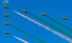 وأوضح قائد فريق الصقور السعودية المقدم طيار محمد بن عبدالله الفارس، أن مشاركة القوات الجوية تضمنت عروضاً جوية احترافية بطائرات فريق الصقور السعودية، فيما قدمت طائرتا التايفون عروضاً جوية انفرادية وأظهروا من خلالها المستوى العالي لقدرات ومهارات الطيارين السعوديين.
