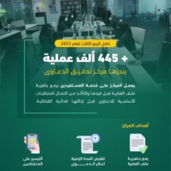 نفذ مركز تهيئة الدعاوى بوزارة العدل أكثر من 445 ألف عملية لتدقيق صحائف الدعوى الواردة إلى جميع محاكم المملكة خلال الربع الثالث من العام الجاري 2023؛ ما أسهم في تحسين جودة المخرجات القضائية وسرعة إنهاء القضايا.