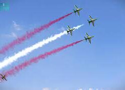 قدمت القوات الجوية الملكية السعودية ممثلة بفريق “الصقور السعودية”، وفريق الاستعراض الجوي المصري “النجوم الفضية” عرضًا جويًا مشتركًا في سماء العاصمة الإدارية الجديدة بمصر، بحضور معالي وزير الشباب والرياضة المصري أشرف صبحي، ومعالي قائد القوات الجوية المصرية الفريق محمود فؤاد عبد الجواد، وسفير خادم الحرمين الشريفين لدى مصر أسامة بن أحمد نقلي، والملحق العسكري العقيد الركن عبدالكريم السديس، وعدد من المسؤولين والسفراء والملاحق العسكريين المعتمدين لدى القاهرة.