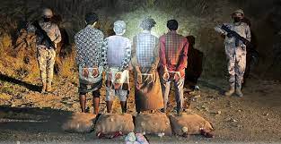 قبضت الدوريات البرية لحرس الحدود في قطاع الدائر بمنطقة جازان على (4) مخالفين لنظام أمن الحدود من الجنسية اليمنية، لمحاولتهم تهريب (60) كيلوجراماً من نبات القات المخدر، وجرى استكمال الإجراءات النظامية الأولية بحقهم، وتسليمهم والمضبوطات لجهة الاختصاص.