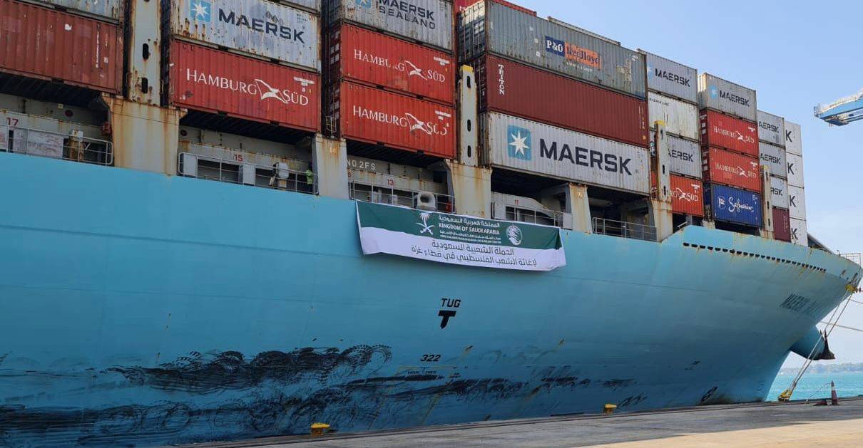 وأمس، استقبل فريق مركز الملك سلمان للإغاثة والأعمال الإنسانية، الدفعة الأولى من شحنات الجسر البحري السعودي في ميناء بورسعيد بمصر؛ تمهيداً لنقلها إلى المتضررين من الشعب الفلسطيني داخل قطاع غزة، وتشتمل على 1050 طناً من المواد الغذائية والطبية والإيوائية للإسهام في التخفيف من معاناة الشعب الفلسطيني في غزة.