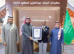 سجل مهرجان الملك عبدالعزيز للصقور 2023، رقماً قياسياً جديداً ليدخل موسوعة (غينيس) للأرقام القياسية للمرة الثالثة في تاريخه؛ بصفته أكبر مسابقة للصقور في العالم، بمشاركة بلغت 2654 صقراً، وذلك في إطار اهتمام القيادة الرشيدة -أيدها الله- ودعمها المتواصل للحفاظ على الموروث الثقافي والحضاري للمملكة.