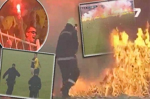 وحوّلت جماهير فريق لودوجوريتس الملعب إلى كتلة من النار؛ إثر إلقائهم ألعاباً نارية على أرض الملعب؛ احتفالاً بهدف المباراة الوحيد الذي سجّله المهاجم السلوفيني رومان بيزياك، بعد مرور 13 دقيقة من الشوط الثاني؛ لتتوقف المباراة عقب الهدف لأكثر من 17 دقيقة.