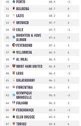 وبحسب آخر تحديث في تصنيف “أوبتا”؛ فإن الهلال نجح في التفوق على العديد من الأندية العالمية؛ أبرزها: (وست هام يونايتد، غلطة سراي، أوليمبيك مارسيليا، فولهام، فنربخشة)، وغيرها من الأندية العالمية.