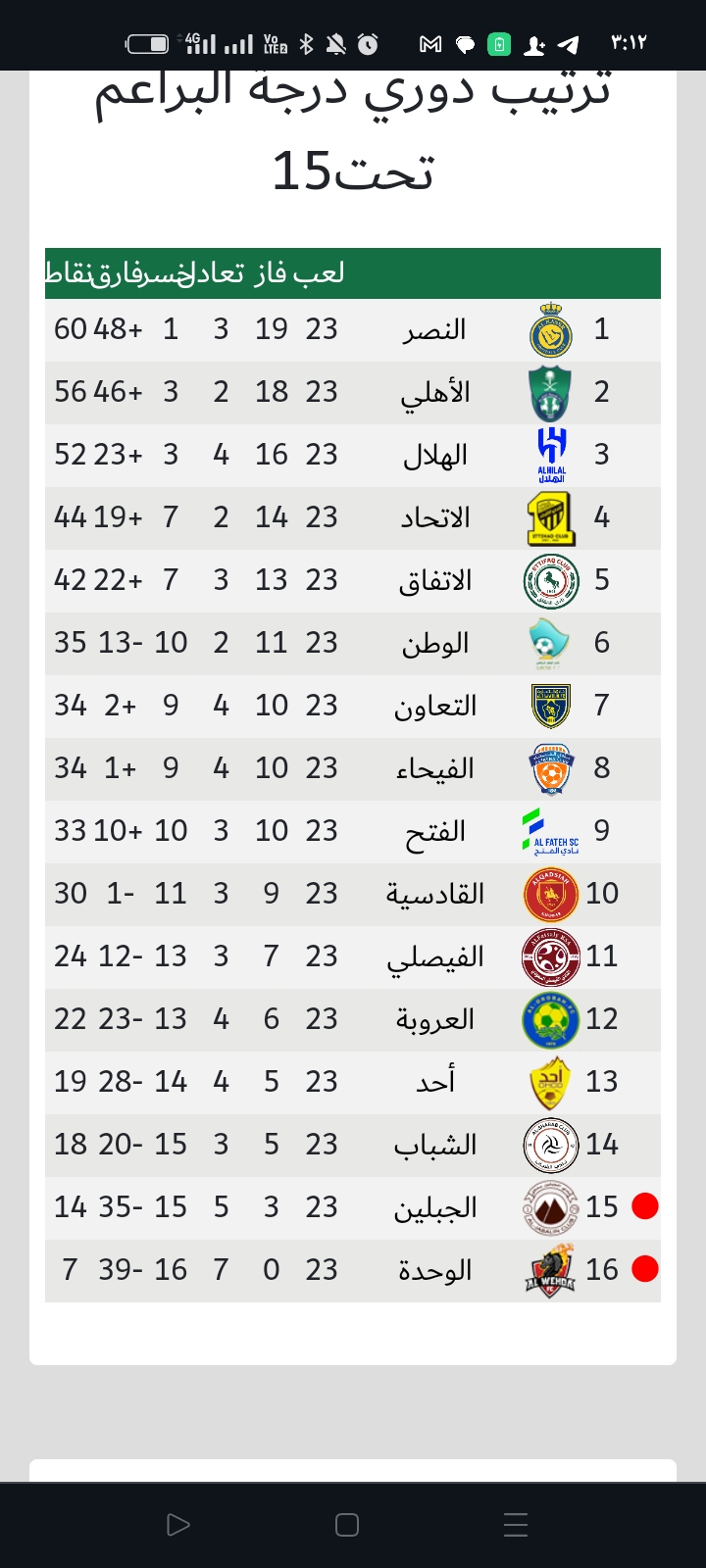 ضمن الجولة 23 من الدوري الممتاز فئة البراعم 15 سنة خاض نادي الوطن مباراة هامة مع نادي الفتح على ملعب البلدية بضمد وانتهت بفوز نادي الوطن 1/0