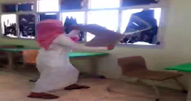 في مشهد عبثي غريب، أظهرت لقطات فيديو، عددًا من الطلاب، قيل إنهم بإحدى المدارس السعودية، وهم يقومون بتكسير نوافذ فصلهم بالكراسي، ومحاولة تدمير السبورة بالكراسي، وتدمير جميع مقاعد الفصل، وذلك مع نهاية العام الدراسي.