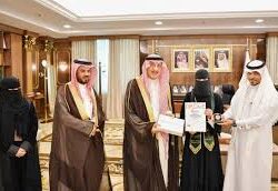 كرّم صاحب السمو الملكي الأمير محمد بن ناصر بن عبدالعزيز أمير منطقة جازان الطالبة الموهوبة ملك بنت حسن القيسي لحصولها على الميدالية البرونزية على مستوى العالم خلال مشاركتها ضمن الفريق السعودي في المعرض الدولي للاختراعات باليكسبو – جنيف 2024م ، عبر ابتكارها تصميم ونمذجة ومحاكاة الطائرة دون طيار ثلاثية المروحية لتحسين الآلية المدمجة.
