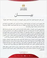 وطالبت مصر إسرائيل بالامتثال لالتزاماتها باعتبارها القوة القائمة بالاحتلال، وتنفيذها للتدابير المؤقتة الصادرة عن محكمة العدل الدولية التي تطالب بضمان نفاذ المساعدات الإنسانية والإغاثية على نحو كافٍ يلبي احتياجات الفلسطينيين في قطاع غزة، وعدم اقتراف القوات الإسرائيلية لأية انتهاكات ضد الشعب الفلسطيني باعتباره شعبًا يتمتع بالحماية وفقًا لاتفاقية منع ومعاقبة جريمة الإبادة الجماعية.