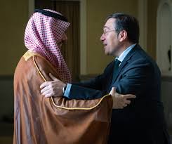 عقد وفد اللجنة الوزارية المكلفة من القمة العربية الإسلامية الاستثنائية المشتركة بشأن التطورات في قطاع غزة، برئاسة صاحب السمو الأمير فيصل بن فرحان بن عبدالله وزير الخارجية، اليوم، بحضور معالي رئيس مجلس الوزراء وزير خارجية دولة قطر الشيخ محمد بن عبدالرحمن بن جاسم آل ثاني، ودولة رئيس وزراء فلسطين وزير الخارجية الدكتور محمد مصطفى، ومعالي نائب رئيس الوزراء وزير الخارجية وشؤون المغتربين في المملكة الأردنية الهاشمية أيمن الصفدي، ومعالي وزير خارجية الجمهورية التركية هاكان فيدان، ومعالي الأمين العام لمنظمة التعاون الإسلامي حسين إبراهيم طه، جلسة مباحثات رسمية مع معالي وزير خارجية مملكة إسبانيا خوسيه مانويل ألباريس، وذلك في عاصمة مملكة إسبانيا مدريد.