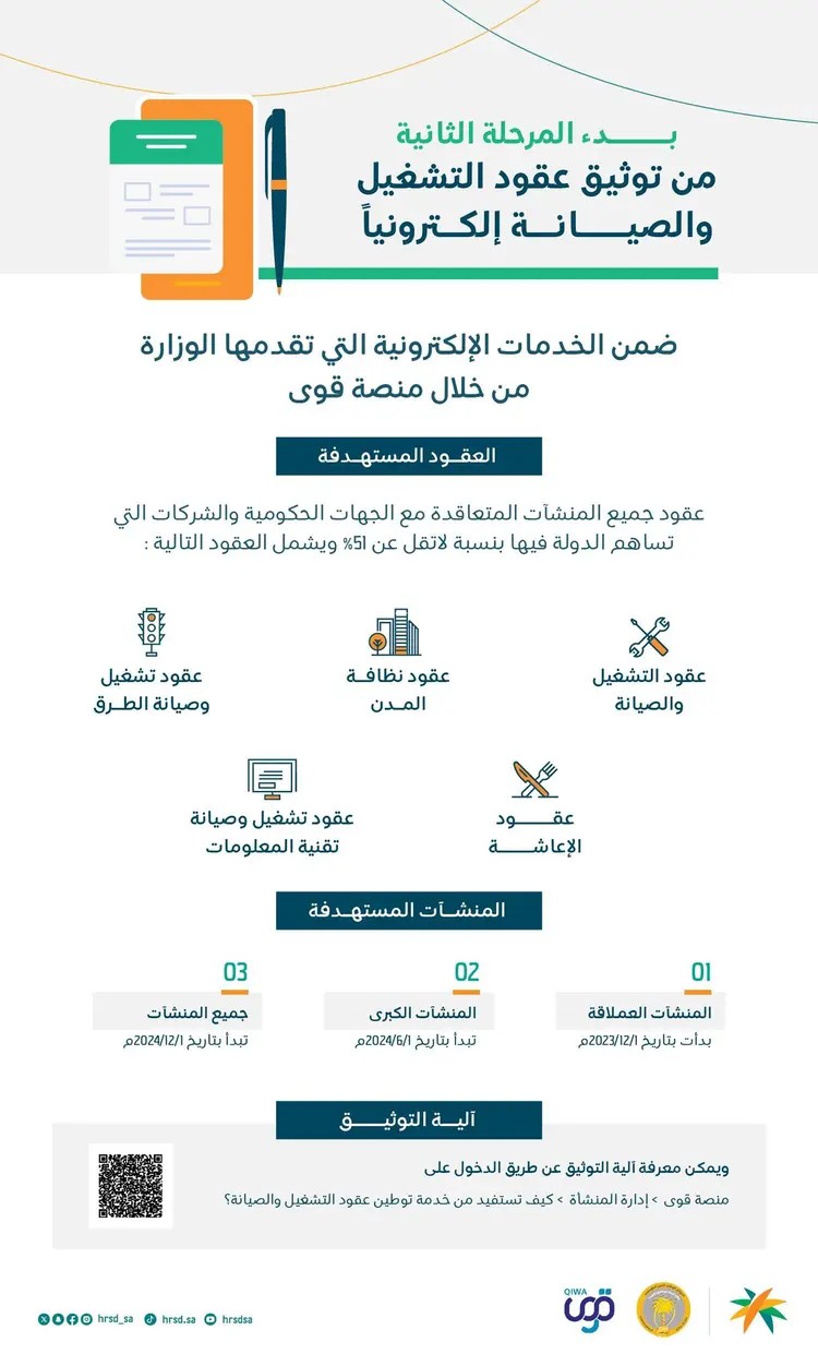 وزارة الموارد البشرية والتنمية الاجتماعية تبدأ تطبيق المرحلة الثانية من توثيق عقود التشغيل والصيانة إلكترونيًا