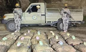 قبضت الدوريات البرية لحرس الحدود في قطاع الدائر بمنطقة جازان على مواطنين، لتهريبهما (47) كيلوجرامًا من نبات القات المخدر، و(3075) قرصًا خاضعًا لتنظيم التداول الطبي، وجرى استكمال الإجراءات النظامية الأولية بحقهما، وتسليمهما والمضبوطات لجهة الاختصاص.