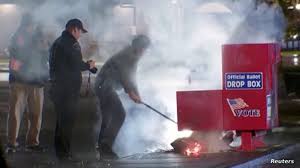 تصاعدت الهجمات على صناديق جمع بطاقات الاقتراع في أنحاء الولايات المتحدة؛ مما يزيد الضغط على المسؤولين في الولايات والمناطق المحلية الذين يسعوْن للإشراف على انتخابات رئاسية آمنة وسلمية، سواء للتصويت المبكر الجاري في معظم أنحاء البلاد، أو للتصويت عند توجه ملايين الأمريكيين إلى صناديق الاقتراع الأسبوع المقبل.